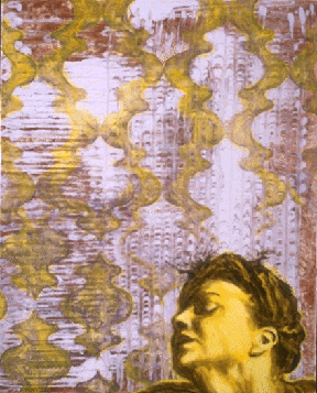 All the works in this series have three constant elements which serve as visual metaphors: an abstract field, a pattern (either grill work, textile patterns or geometric patterns) and the figure of a dancer.media and dimensions.