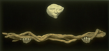 (sculpture) plywood, cast hydrocal, linen, curly willow, 48" x 24" x 6", (1995)